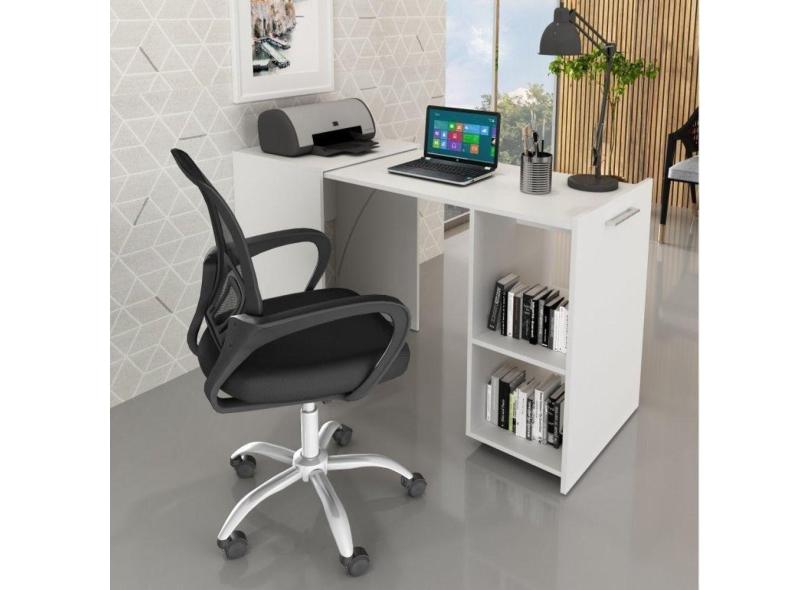 Escrivaninha Retrátil para Escritório ME4170 com Cadeira para Escritório Diretor Tela Mesh Tok 3310 Branco/Preto