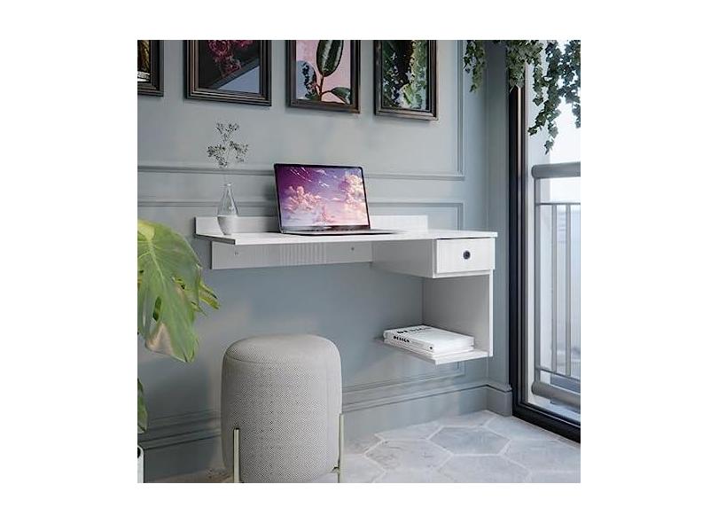 Escrivaninha Suspensa Notbook Gaveta Luxo Branco - Comprar Moveis em Casa