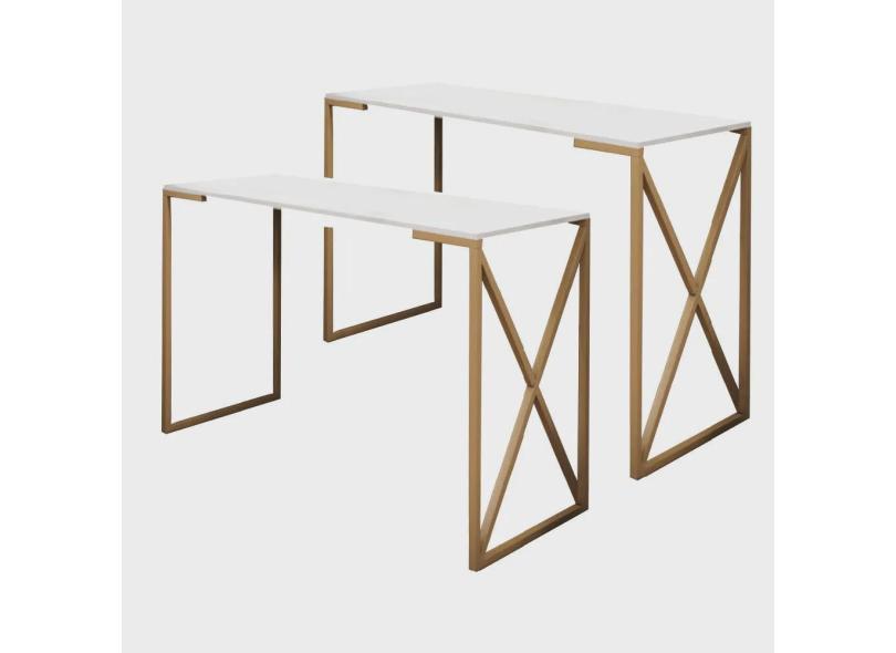 Kit 02 Mesa Escrivaninha Escritório e Home Office BeX Industrial Ferro Dourado Tampo mdf Branco - Ahazzo Móveis