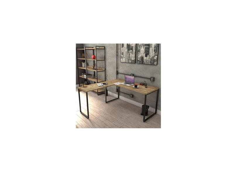 Kit 2 Mesas de Escritório em L Estilo Industrial Carvalho