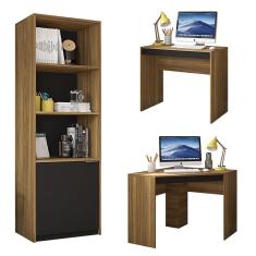 Kit Conjunto Escritório Armário Mesas Recta Marrom Caemmun