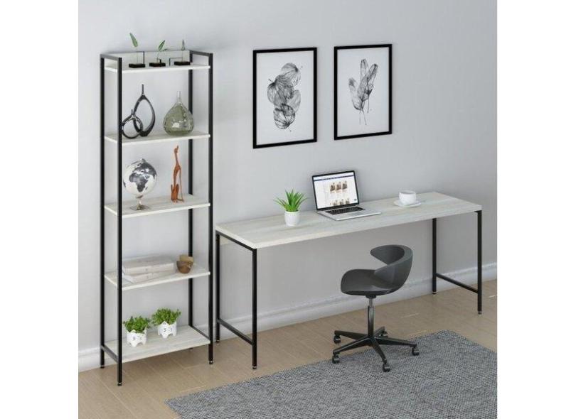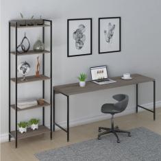 Kit Escrit rio 2 Pe as Mesa Diretor Industrial 180cm E Estant