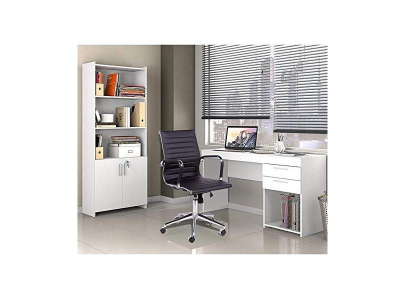 Kit Escritório Completo Office Mesa 2 Gavetas com Armário Multiuso e Cadeira Boston