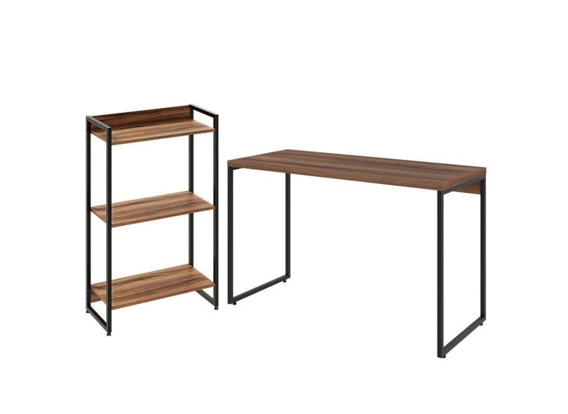 O menor preço encontrado no Brasil para Kit Escritório Estante 3 Prateleiras Com Mesa 120Cm Nogal atualmente é R$ 561,11.