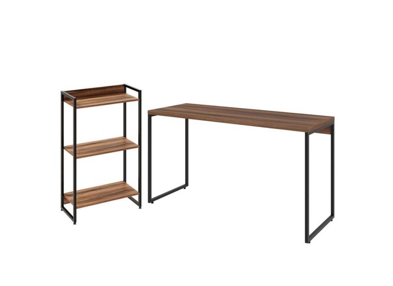 Kit Escritório Estante 3 Prateleiras Com Mesa 135Cm Nogal