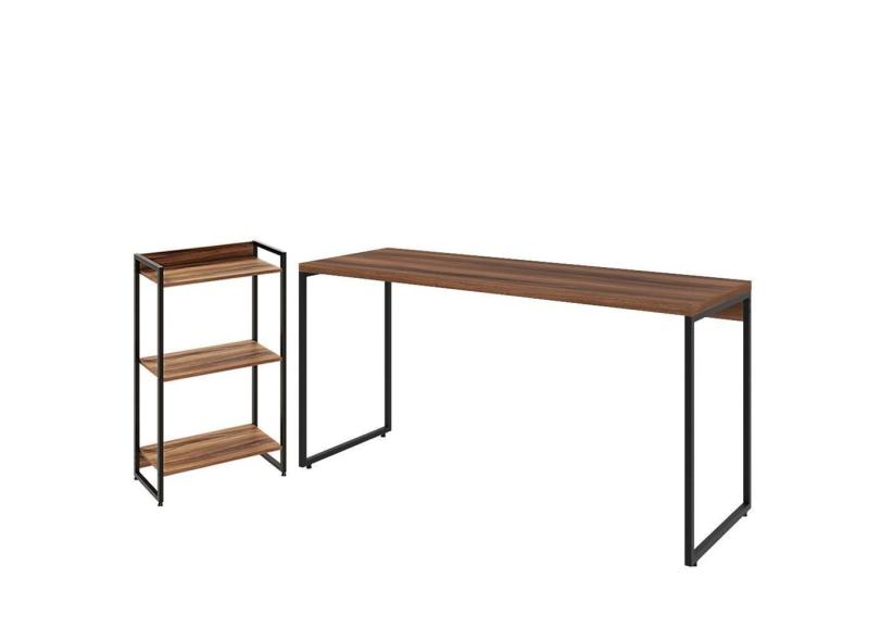 Kit Escritório Estante 3 Prateleiras Com Mesa 150Cm Nogal