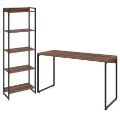 O menor preço encontrado no Brasil para Kit Escritório Estante 5 Prateleiras Com Mesa 135Cm Nogal atualmente é R$ 727,63.