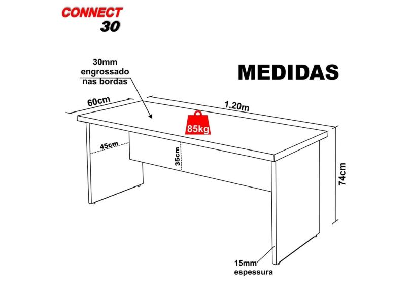 Mesa 1.20x60 Várias Cores Para Escritório Escrivaninha Tampo 30mm - KasMobile