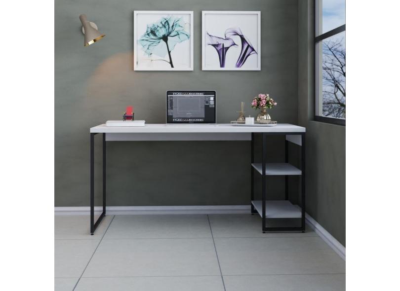 Mesa C-estante Baixa 150x64x75cm C-02 Prateleiras Branco Chess - Est.preta Branco Chess - Est.preta
