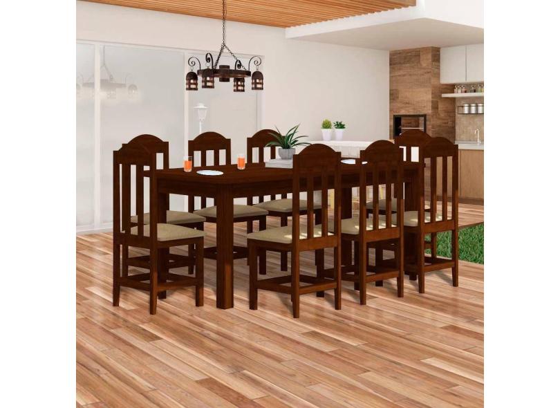 O menor preço encontrado no Brasil para Mesa Com 8 Cadeiras Estofadas Bege de Madeira Maciça Castanho atualmente é R$ 4.459,90.