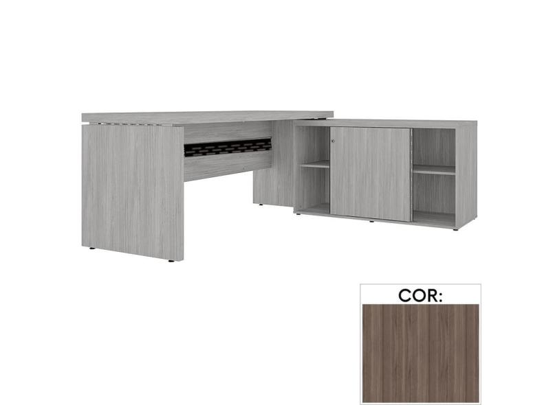O menor preço encontrado no Brasil para Mesa com Balcão e Prateleiras PE50 em MDP 160 x 170 cm Cor Walnut detalhe Preto atualmente é R$ 2.180,15.