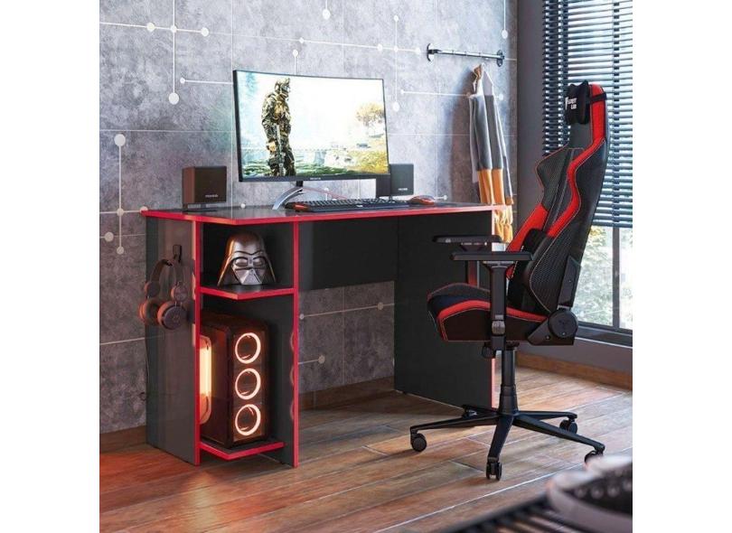 Mesa Computador Gamer 3875 Com Suporte Fone De Ouvido - Qmovi Cor Preto / Vermelho