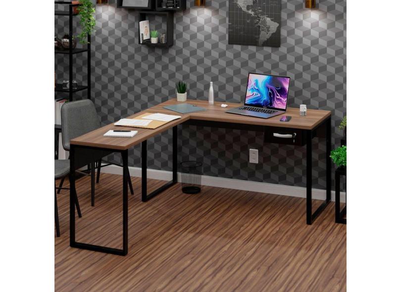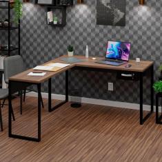 Mesa de Canto em L Escrivaninha com 1 Gaveta Industrial 150x150cm Nogal