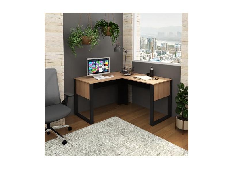 Mesa de canto para escritório Me4181 Amêndoa/Preto Tecnomobili