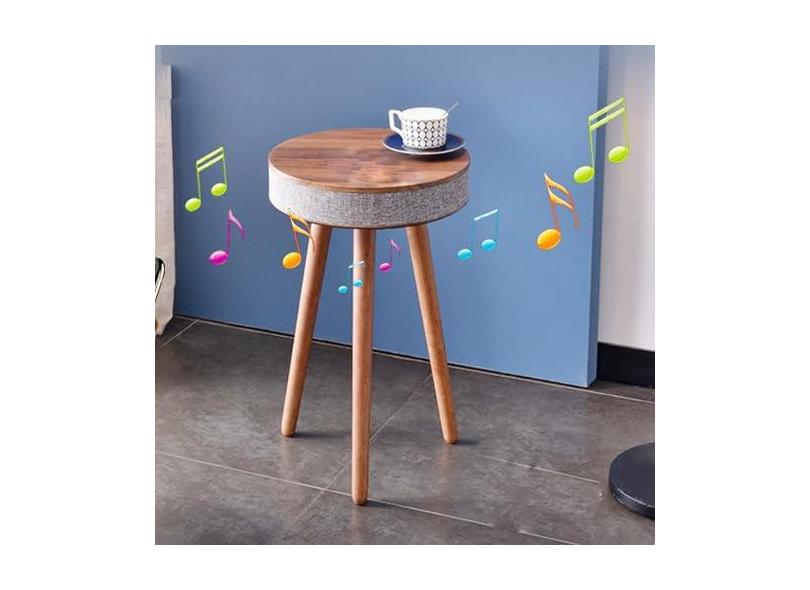 Mesa de centro de LED com estação de carregamento sem fio, mesa de som inteligente, mesa de canto redonda pequena, mesa de centro para pátio externo redonda para sala de estar, escritório,