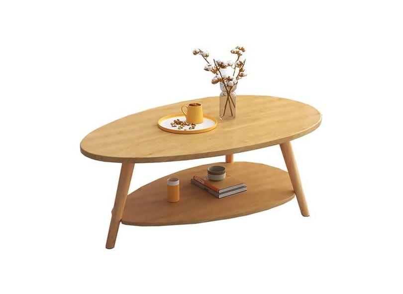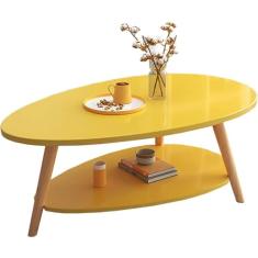 Mesa de centro doméstica, mesa oval de madeira com prateleiras abertas para armazenamento e exibição mesa de sofá de 2 níveis, móveis pequenos e modernos, sala de estar e escritório em casa