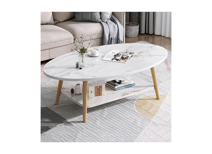 Mesa de centro oval, 2 camadas modernas, com prateleiras abertas para armazenamento e exibição, mesa de sofá de 2 níveis, móveis modernos pequenos para sala de estar e escritório em casa, cinza,