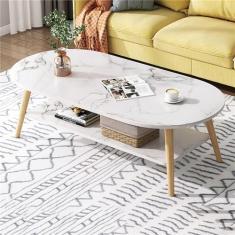 O menor preço encontrado no Brasil para Mesa de centro oval, 2 camadas modernas, com prateleiras abertas para armazenamento e exibição, mesa de sofá de 2 níveis, móveis modernos pequenos para sala de estar e escritório em casa, cinza, atualmente é R$ 2.731,58.