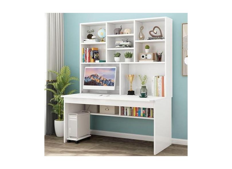 Mesa de computador com estante para espaços pequenos, mesa de escrita/estação de trabalho de madeira Mesa de estudo para estudantes em casa Mesa de escritório em casa Mesa de computador com