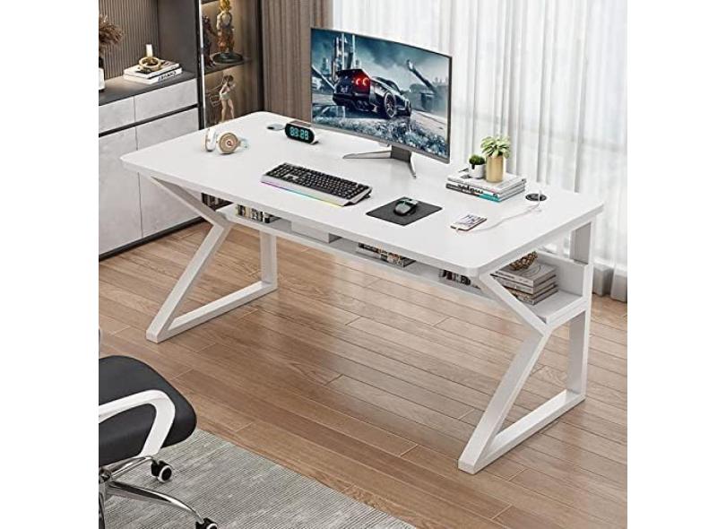 Mesa De Computador Em Forma De K, Mesa De Trabalho Ergonômica Para Estudo, Estação De Trabalho Para Escritório Doméstico, Mesa Para Pc, Mesa De Jogos Com Portas USB E Gerenciamento De Cabos,Branco