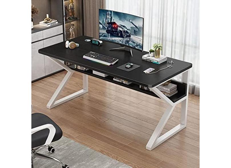 Mesa De Computador Em Forma De K, Mesa De Trabalho Ergonômica Para Estudo, Estação De Trabalho Para Escritório Doméstico, Mesa Para Pc, Mesa De Jogos Com Portas USB E Gerenciamento De Cabos,Preto,