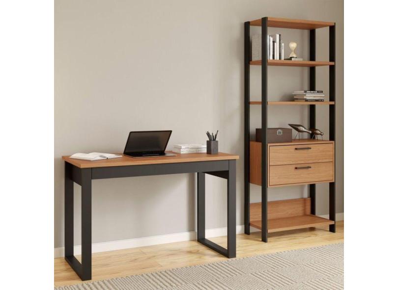 Mesa de Escritório 1 Gaveta 118cm com Estante Torre 2 Gavetas Freijó/Preto