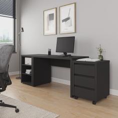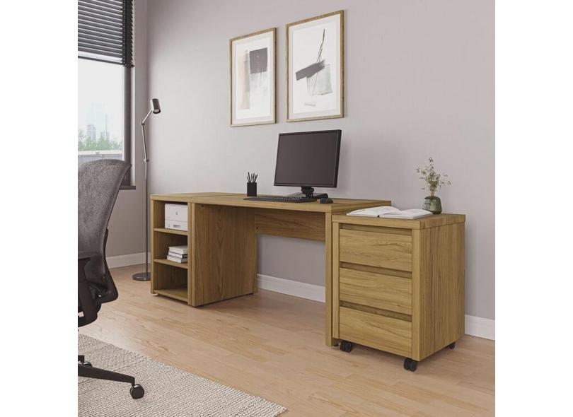 Mesa de Escritório 120cm com Gaveteiro com Rodízio e Prateleiras Ficus Cabecasa Madeiramadeira