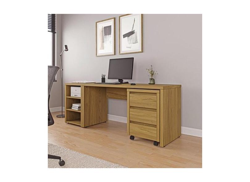 Mesa de Escritório 150cm com Gaveteiro com Rodízio e Prateleiras Ficus