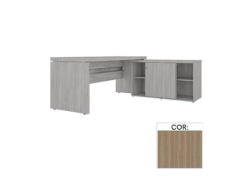 O menor preço encontrado no Brasil para Mesa de Escritório com Balcão e Prateleiras internas Pe50 em Mdp 160 x 170 cm Cor Noce Naturalle atualmente é R$ 1.918,53.