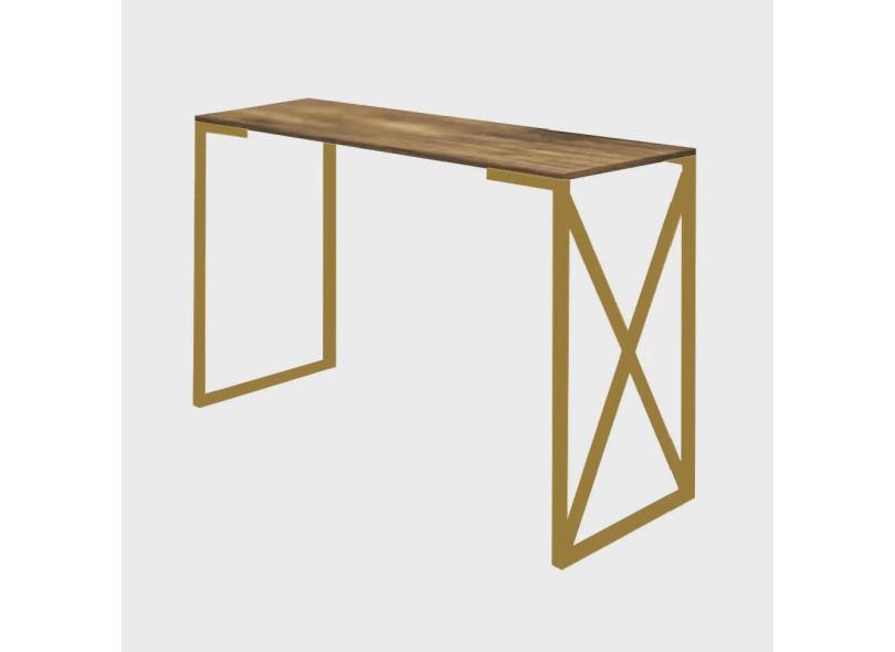 Mesa De Escritório Computador 90cm Bex Industrial Ferro Dourado mdf Rústico - Ahz Móveis