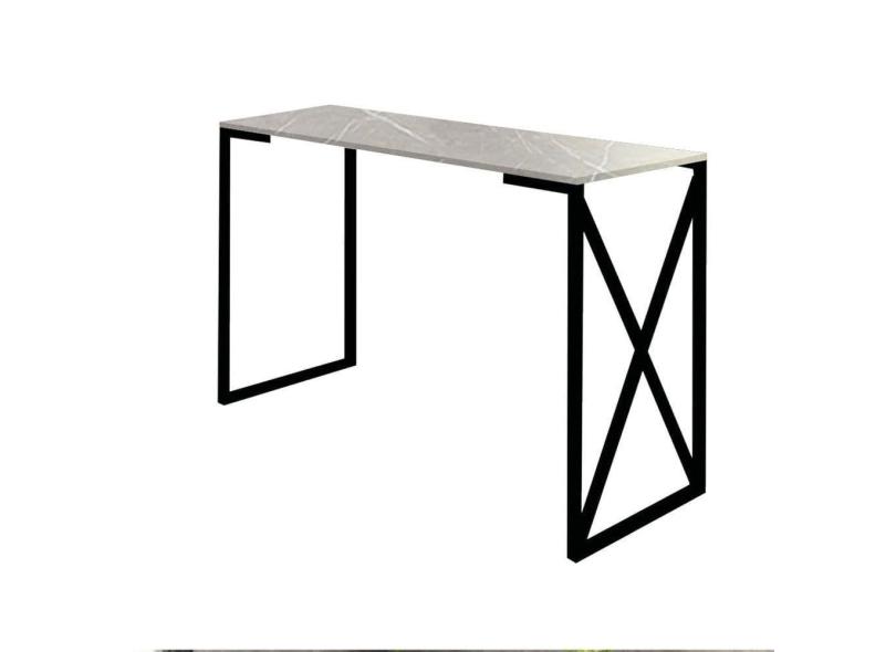 Mesa De Escritório Computador 90cm Bex Industrial Ferro Preto MDF Marmorizado Cinza - Ahz Móveis