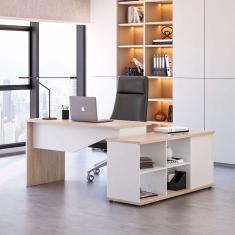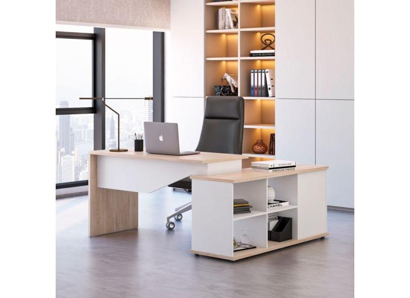 Mesa de Escritório Diretor em L Rolig 3 GV Carvalho e Branca