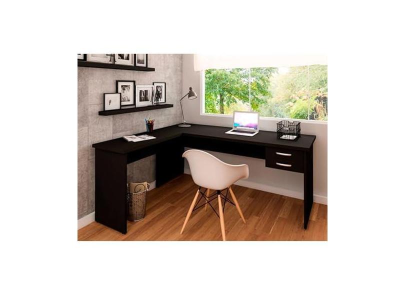 O menor preço encontrado no Brasil para Mesa De Escritório em L 120x150cm com Gaveta Tampo 30mm Preto atualmente é R$ 531,33.