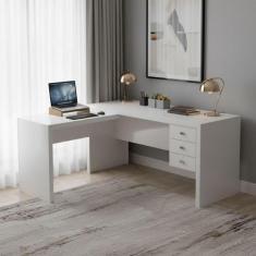 Mesa De Escritório Em L 3 Gavetas Me4106 Tecno Mobili - Branco