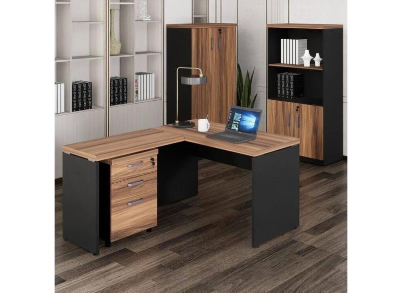 O menor preço encontrado no Brasil para Mesa de Escritório em L com Gaveteiro, Armário Estante e Armário Fechado Espresso Móveis Marrom/Preto atualmente é R$ 2.400,26.