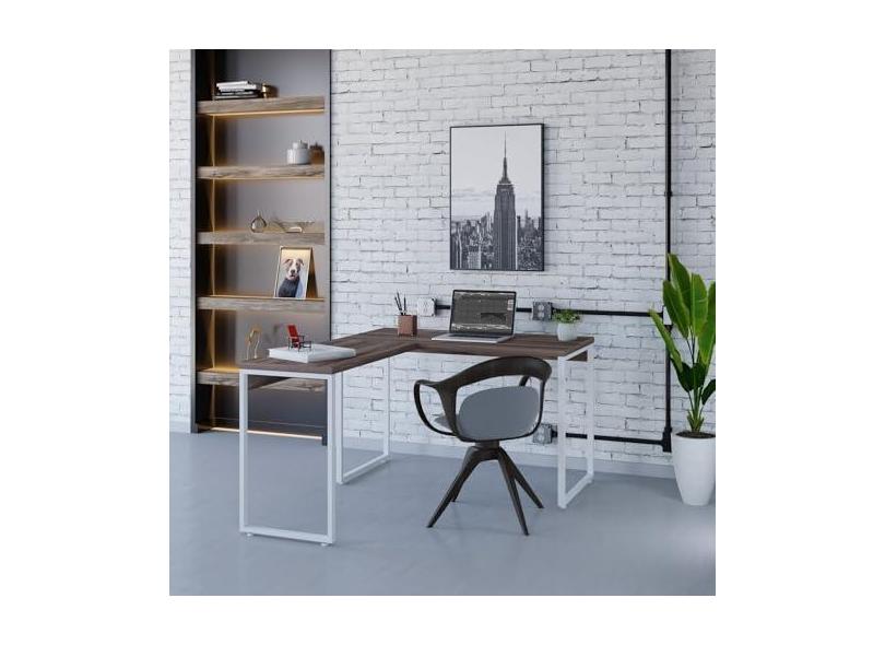 O menor preço encontrado no Brasil para Mesa de Escritório em L Estilo Industrial 120x150cm Kuadra Nogal/Est.Branca atualmente é R$ 491,10.