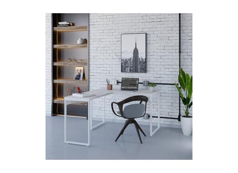 Mesa de Escritório em L Estilo Industrial 120x150cm Kuadra Snow/Est.Branca