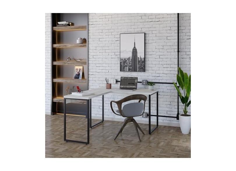 Mesa de Escritório em L Estilo Industrial 120x150cm Kuadra Snow/Est.Preta