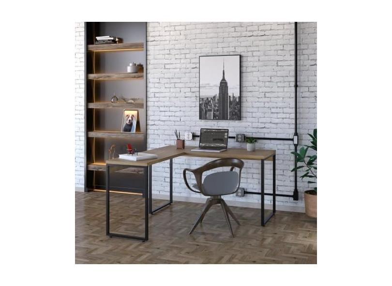 O menor preço encontrado no Brasil para Mesa de Escritório em L Estilo Industrial 135x150cm Kuadra Lâmina Mel/Est.preta atualmente é R$ 453,31.