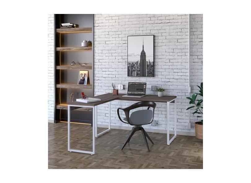 O menor preço encontrado no Brasil para Mesa de Escritório em L Estilo Industrial 135x150cm Kuadra Nogal/Est.Branca atualmente é R$ 491,10.