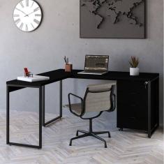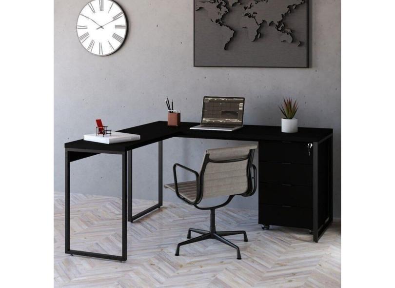 Mesa de Escritório em L Estilo Industrial 150x150cm com Gaveteiro Volante 4 Gavetas Onix