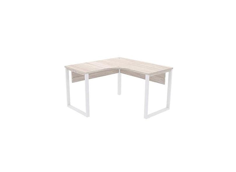 Mesa de Escritório em L Pé Tubular Pe25 em Mdp 125 x 125 x 60 cm Nogueira Casablanca e Base Branca