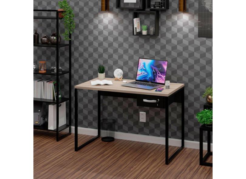 Mesa De Escritório Escrivaninha Industrial 1 Gaveta 100cm Carvalho