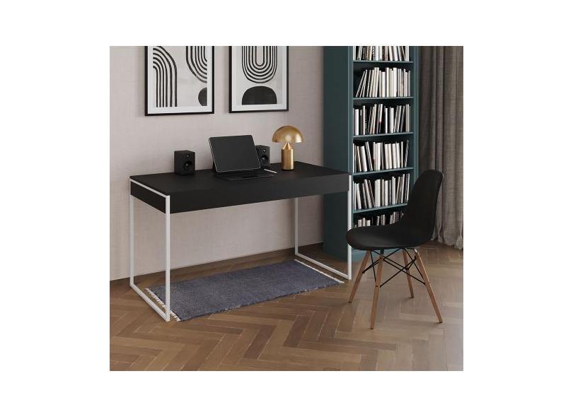 Mesa De Escritório Industrial Malta Preta 137X53cm Base Ferro Branco C