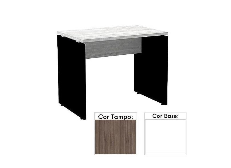 Mesa de Escritório Pé Painel Pe25 em Mdp 134 x 60 cm Cor Walnut e Base Branca