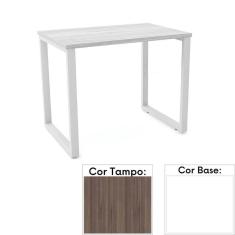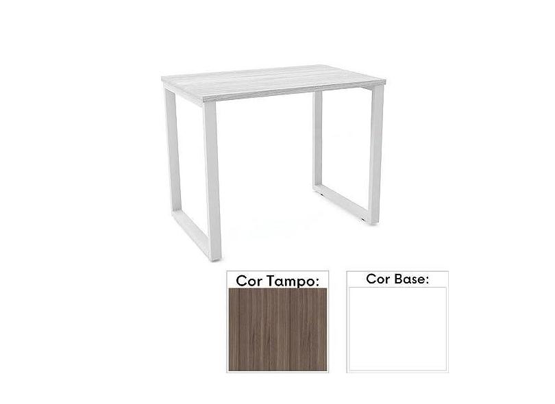 Mesa de Escritório Pé Tubular Pe25 em Mdp 90 x 45 cm Cor Walnut e Base Branca