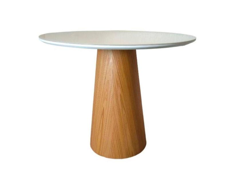 Mesa De Jantar Cone Redonda 140 Cm Base Madeira Freijó Tampo Laqueado Cor Branco