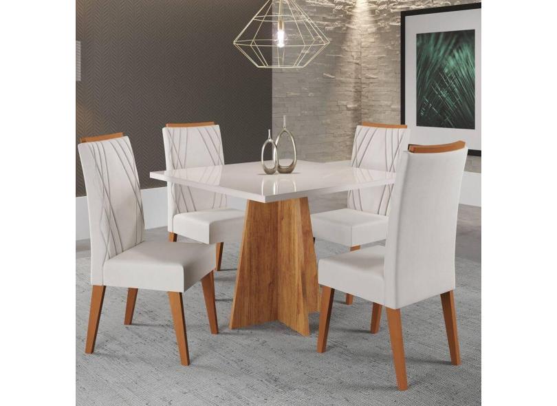Mesa de Jantar Quadrada Columbia Tampo em Mdp sem Vidro 90x90 e 4 Cadeiras Vegas em Madeira Maciça Mel/Blonde/Marfim