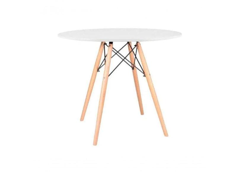 Mesa De Jantar Redonda Eiffel Eames 110cm Tampo Madeira Branco