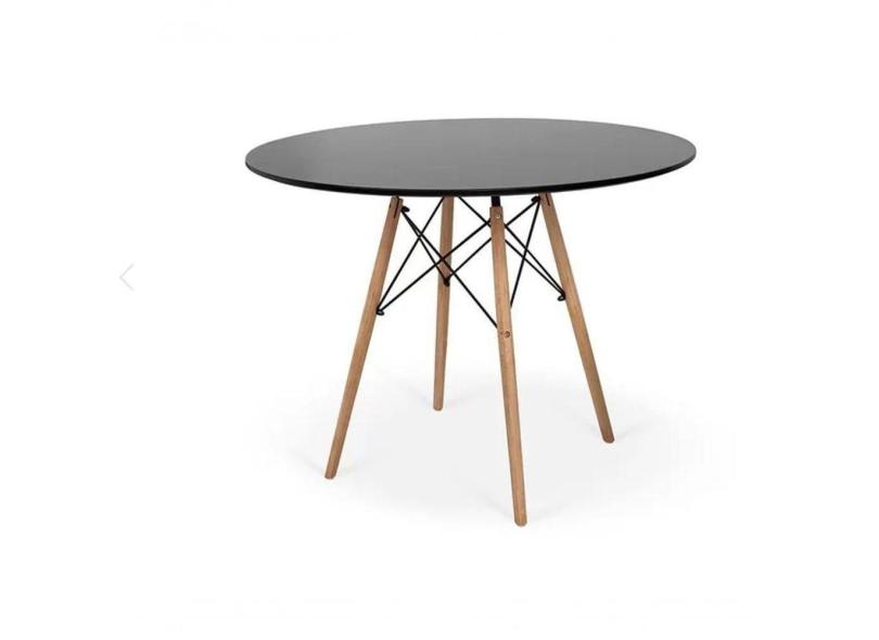Mesa De Jantar Redonda Eiffel Eames 110cm Tampo Madeira Preto